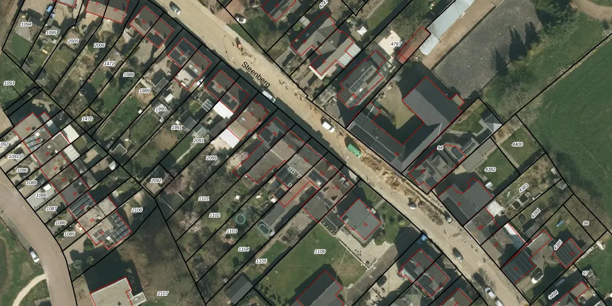 Het perceel waarop Steenberg 65 staat heeft een oppervlakte van 412 m². Dit is een groot perceel. De perceeloppervlakte wordt geregistreerd door het Kadaster. Gedetailleerde informatie over de maten van dit perceel kunt u vinden in het rapport Kadastrale kaart met maatvoering van Steenberg 65.