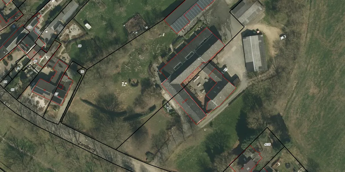 Het perceel waarop Zandberg 20 staat heeft een oppervlakte van 6170 m². Dit is een zeer groot perceel. De perceeloppervlakte wordt geregistreerd door het Kadaster. Gedetailleerde informatie over de maten van dit perceel kunt u vinden in het rapport Kadastrale kaart met maatvoering van Zandberg 20.