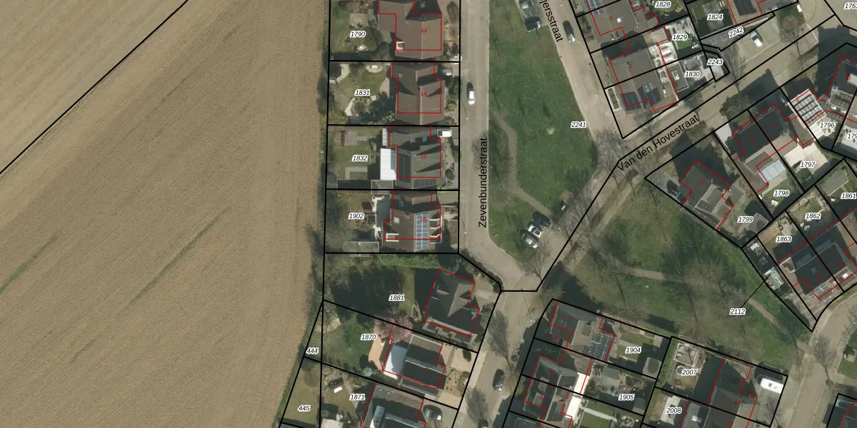 Gebruik de zoekbalk of klik op een perceel voor informatie over de adressen binnen dit perceel.