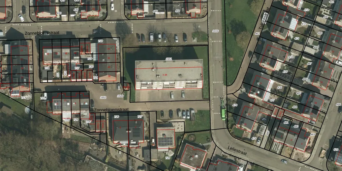 Zonnebloemstraat 16 is gelegen op kadastraal perceel SPV00G1651. Deze kadastrale aanduiding is uniek en wordt gebruikt door het Kadaster om eigendomsrechten en andere zakelijke rechten vast te leggen. Het perceel maakt onderdeel uit van de kadastrale gemeente Simpelveld.
