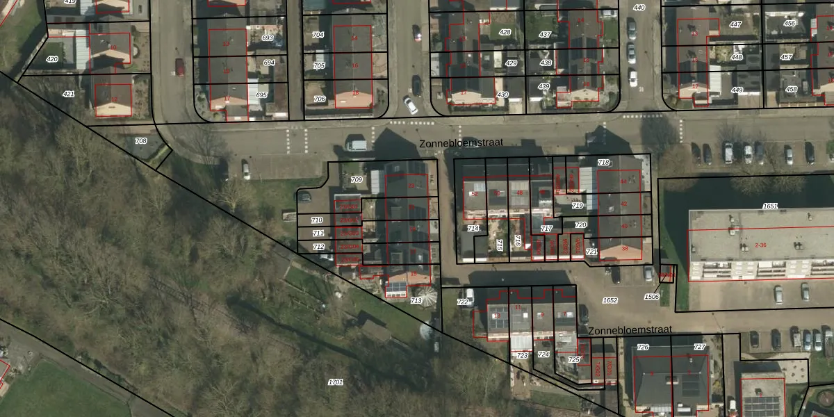 Zonnebloemstraat 21 is gelegen op kadastraal perceel SPV00G710. Deze kadastrale aanduiding is uniek en wordt gebruikt door het Kadaster om eigendomsrechten en andere zakelijke rechten vast te leggen. Het perceel maakt onderdeel uit van de kadastrale gemeente Simpelveld.