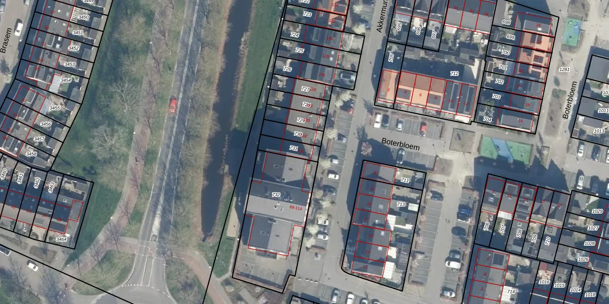 Gebruik de zoekbalk of klik op een perceel voor informatie over de adressen binnen dit perceel.