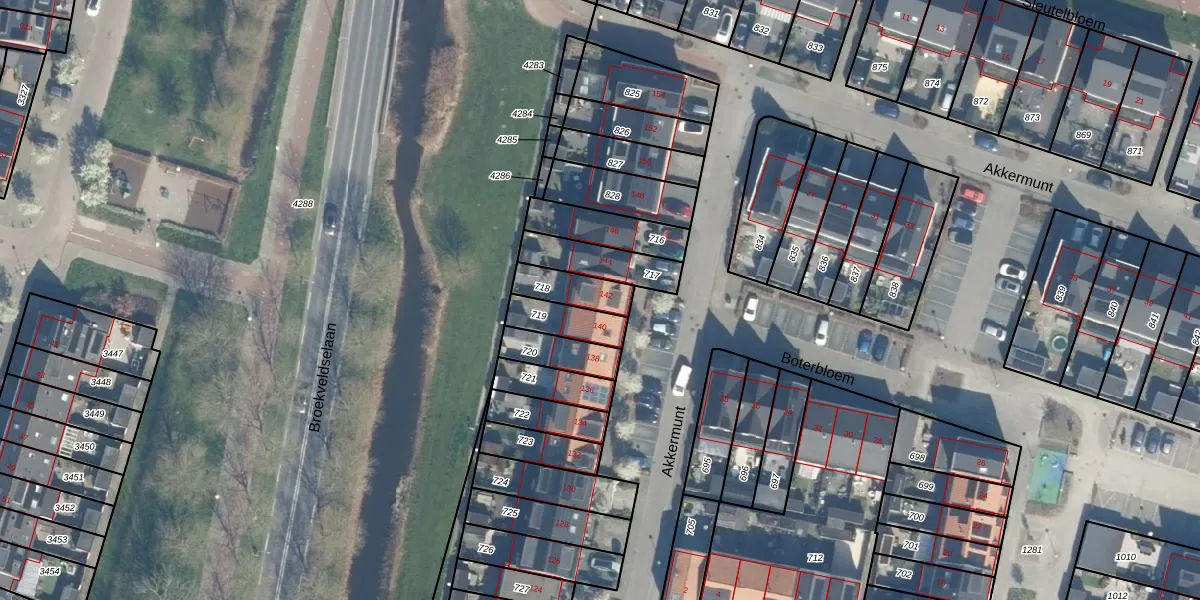 Het perceel waarop Akkermunt 142 staat heeft een oppervlakte van 108 m². Dit is een middelgroot perceel. De perceeloppervlakte wordt geregistreerd door het Kadaster. Gedetailleerde informatie over de maten van dit perceel kunt u vinden in het rapport Kadastrale kaart met maatvoering van Akkermunt 142.