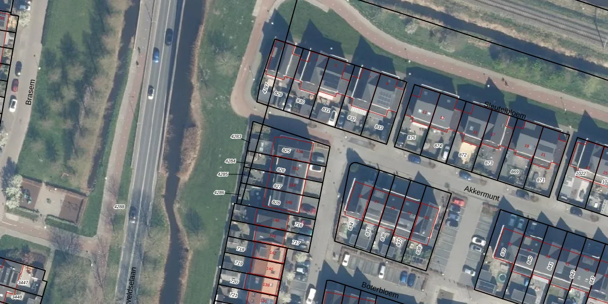 Het adres is gelegen op perceel 825 in de sectie H en de kadastrale gemeente Bodegraven. De kadastrale aanduiding is aldus BDG00-H-825. De gemiddelde perceelgrootte in Bodegraven is 3221,51 m². Dit perceel is kleiner: de perceeloppervlakte bedraagt 192 m². Het kleinste perceel in de kadastrale gemeente is 0 m² groot. De grootste perceeloppervlakte is 36,3 ha. Dit is het enige adres dat aanwezig is op het perceel. De huidige grenzen van het perceel zijn digitaal in de Basisregistratie Kadaster (BRK) geregistreerd op 12-10-2016.