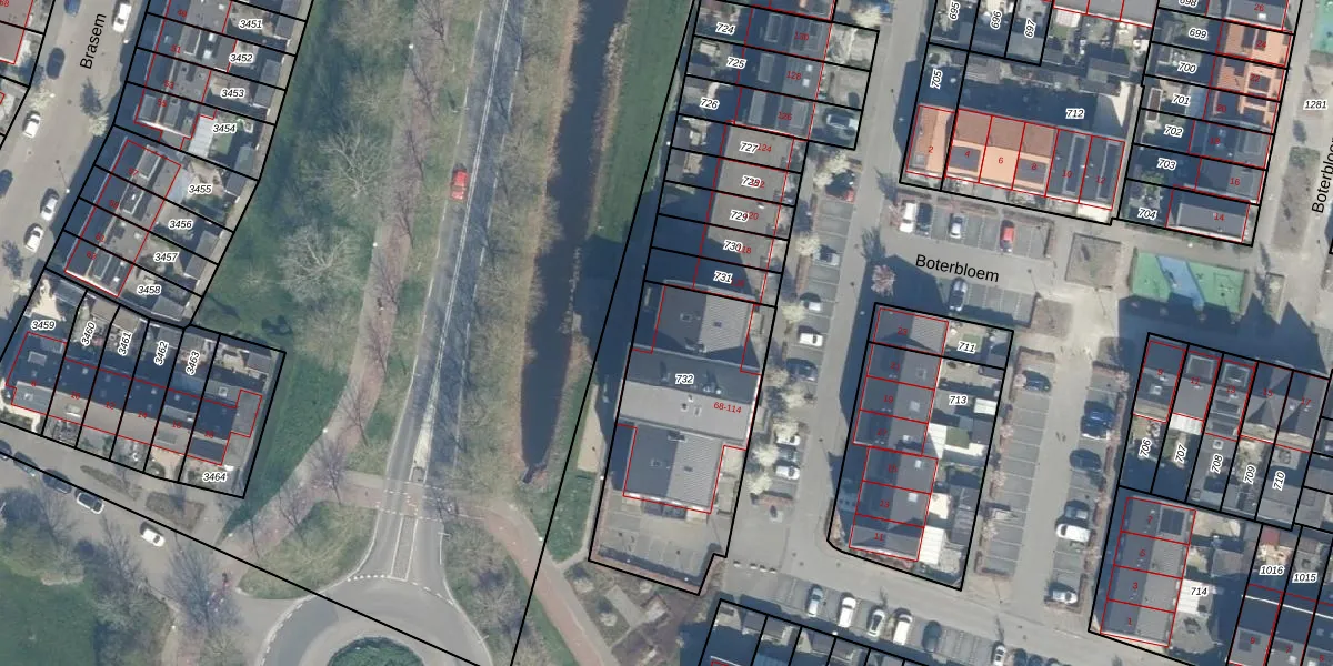 Het perceel waarop het adres ligt is BDG00-H-732. De afkorting 'BDG00' staat voor kadastrale gemeente Bodegraven. Het perceel is kleiner dan gemiddeld in Bodegraven. Het perceel is 869 m² groot, terwijl het gemiddelde ligt op 3221,51 m². Het kleinste perceel in de kadastrale gemeente is 0 m² groot. De grootste perceeloppervlakte is 36,3 ha. Op het perceel zijn 23 adressen aanwezig. De huidige grenzen van het perceel zijn digitaal in de Basisregistratie Kadaster (BRK) geregistreerd op 05-04-2012.