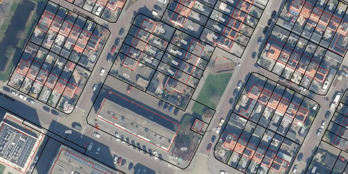 Gebruik de zoekbalk of klik op een perceel voor informatie over de adressen binnen dit perceel.