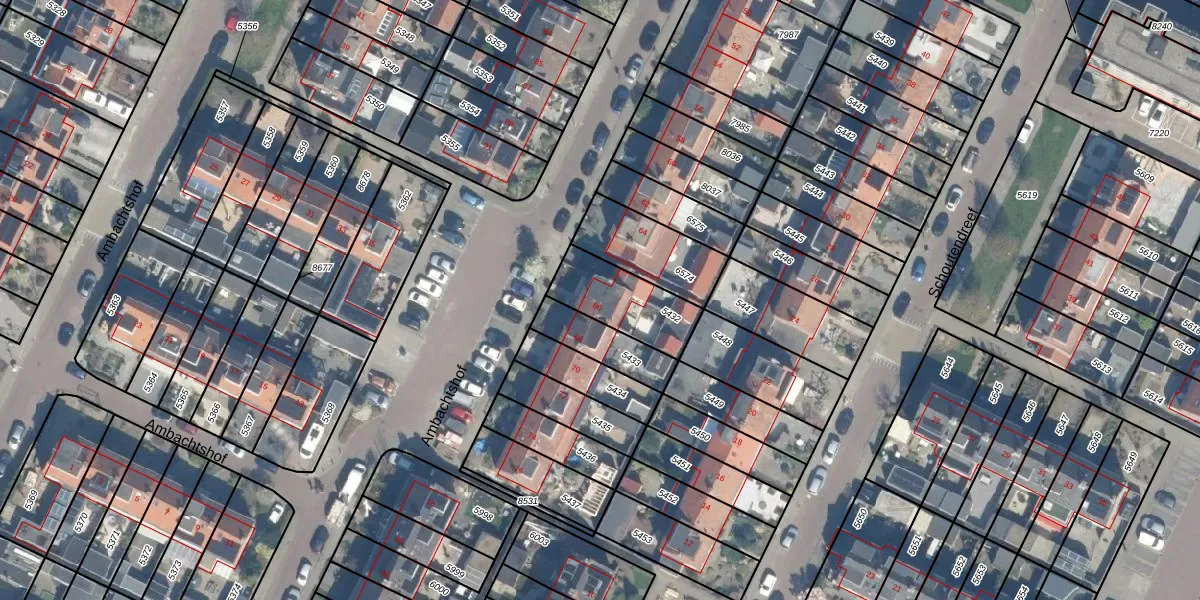 Het perceel waarop Ambachtshof 66 staat heeft een oppervlakte van 236 m². Dit is een middelgroot perceel. De perceeloppervlakte wordt geregistreerd door het Kadaster. Gedetailleerde informatie over de maten van dit perceel kunt u vinden in het rapport Kadastrale kaart met maatvoering van Ambachtshof 66.