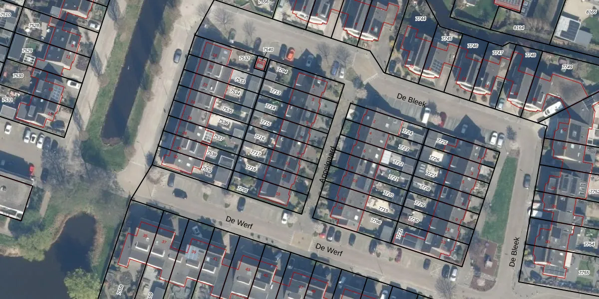 Gebruik de zoekbalk of klik op een perceel voor informatie over de adressen binnen dit perceel.