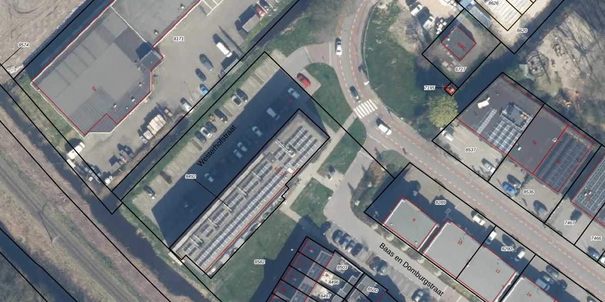 Het adres is gelegen op perceel 8492 in de sectie C en de kadastrale gemeente Bodegraven. De kadastrale aanduiding is aldus BDG00-C-8492. Het perceel is kleiner dan gemiddeld in Bodegraven. Het perceel is 975 m² groot, terwijl het gemiddelde ligt op 3219,09 m². De grootste perceeloppervlakte in de kadastrale gemeente is 36,3 ha. De kleinste oppervlakte bedraagt 0 m². Er zijn 29 adressen aanwezig op het perceel. In de Basisregistratie Kadaster (BRK) werden de grenzen van het perceel geregistreerd op 14-02-2022.