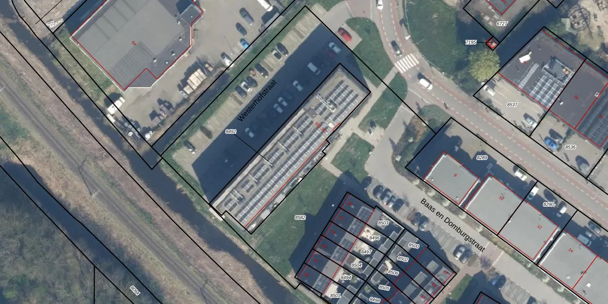 Het adres is gelegen op perceel 8492 in de sectie C en de kadastrale gemeente Bodegraven. De kadastrale aanduiding is aldus BDG00-C-8492. Het perceel is kleiner dan gemiddeld in Bodegraven. Het perceel is 975 m² groot, terwijl het gemiddelde ligt op 3215,6 m². De grootste perceeloppervlakte in de kadastrale gemeente is 36,3 ha. De kleinste oppervlakte bedraagt 0 m². Op het perceel zijn 29 adressen aanwezig. In de Basisregistratie Kadaster (BRK) werden de grenzen van het perceel geregistreerd op 14-02-2022.
