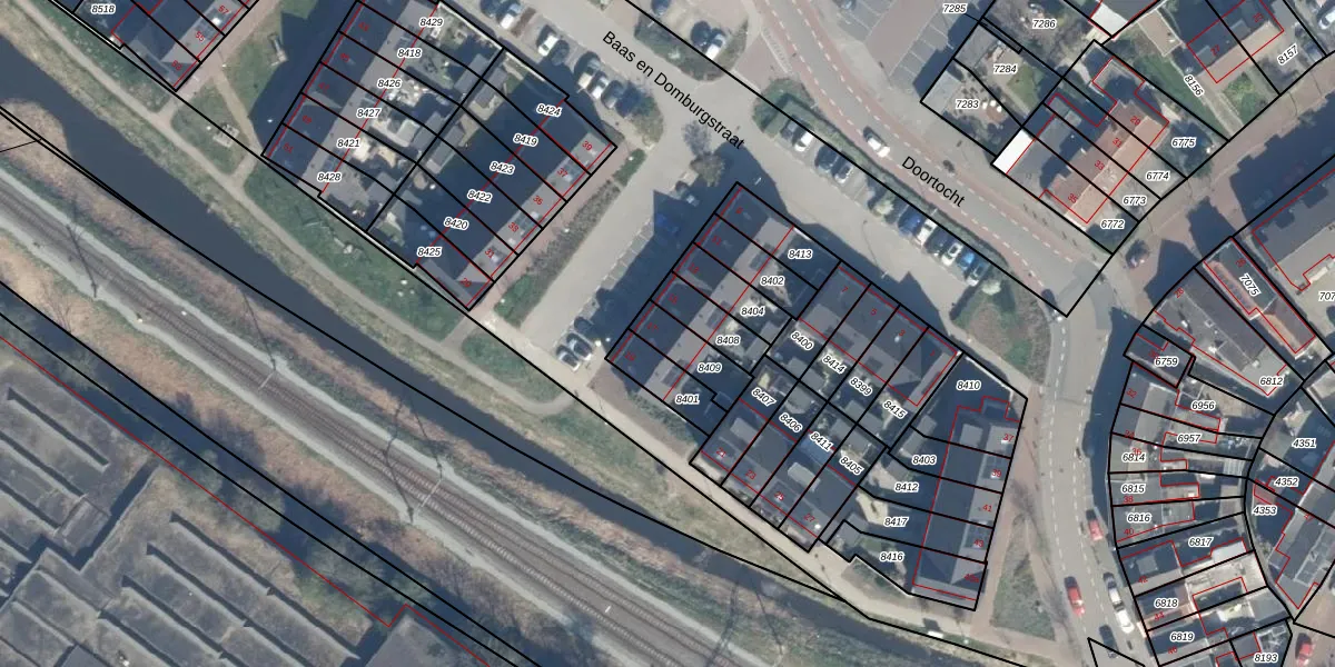 Baas en Domburgstraat 17 is gelegen op kadastraal perceel BDG00C8409. Deze kadastrale aanduiding is uniek en wordt gebruikt door het Kadaster om eigendomsrechten en andere zakelijke rechten vast te leggen. Het perceel maakt onderdeel uit van de kadastrale gemeente Bodegraven.