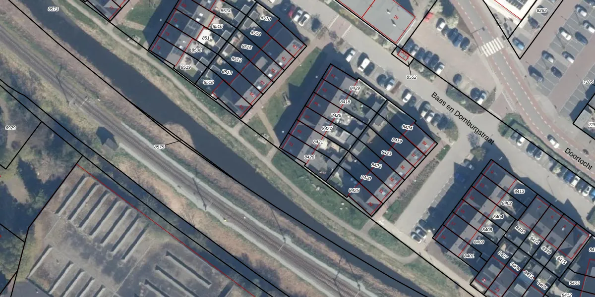 Baas en Domburgstraat 51 is gelegen op kadastraal perceel BDG00C8428. Deze kadastrale aanduiding is uniek en wordt gebruikt door het Kadaster om eigendomsrechten en andere zakelijke rechten vast te leggen. Het perceel maakt onderdeel uit van de kadastrale gemeente Bodegraven.
