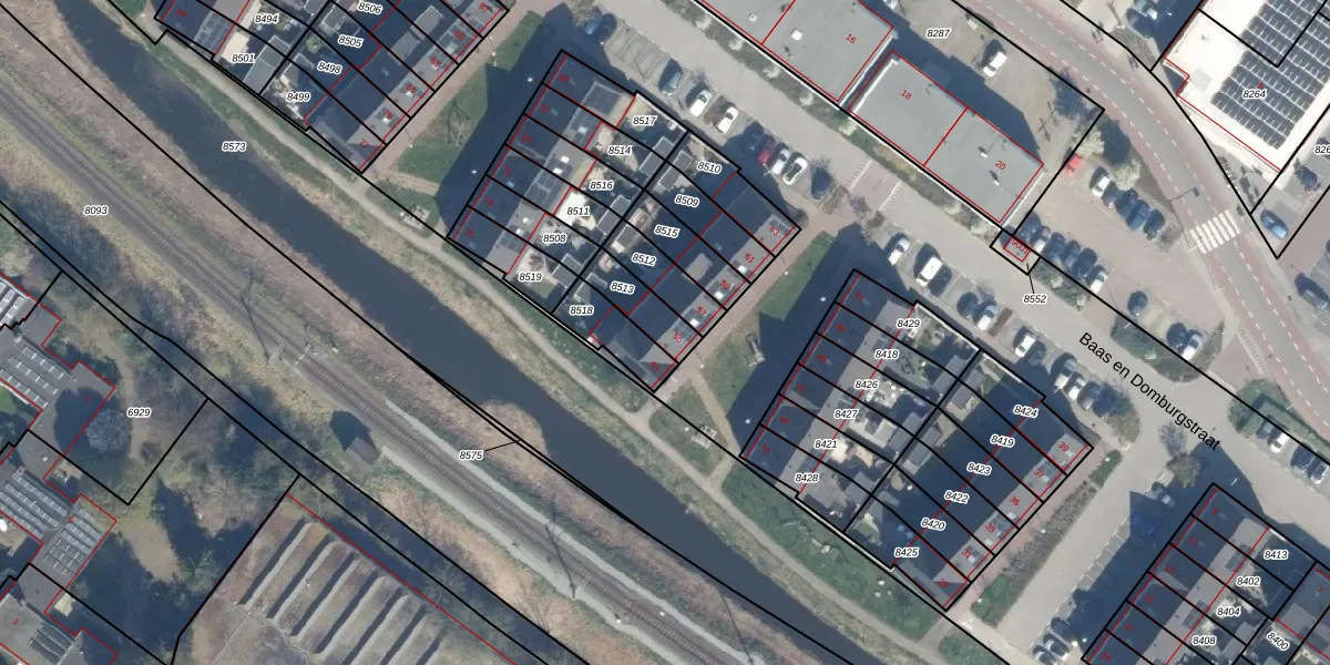 Baas en Domburgstraat 55 is gelegen op kadastraal perceel BDG00C8513. Deze kadastrale aanduiding is uniek en wordt gebruikt door het Kadaster om eigendomsrechten en andere zakelijke rechten vast te leggen. Het perceel maakt onderdeel uit van de kadastrale gemeente Bodegraven.