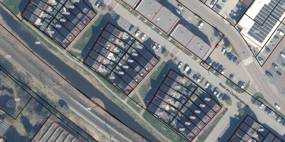 Baas en Domburgstraat 59 is gelegen op kadastraal perceel BDG00C8515. Deze kadastrale aanduiding is uniek en wordt gebruikt door het Kadaster om eigendomsrechten en andere zakelijke rechten vast te leggen. Het perceel maakt onderdeel uit van de kadastrale gemeente Bodegraven.