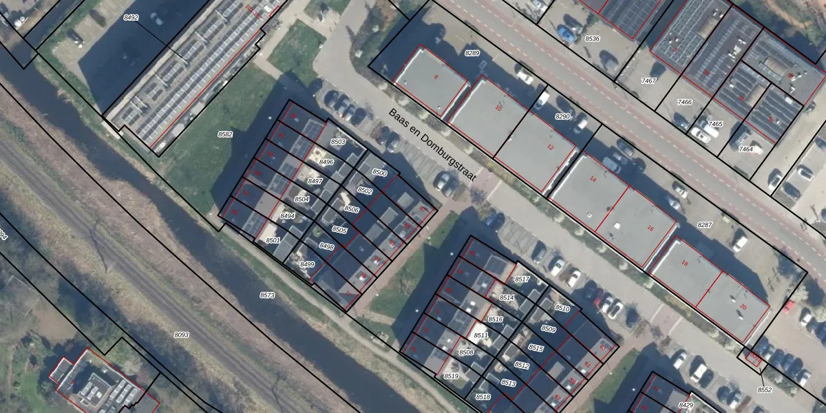 Baas en Domburgstraat 87 is gelegen op kadastraal perceel BDG00C8500. Deze kadastrale aanduiding is uniek en wordt gebruikt door het Kadaster om eigendomsrechten en andere zakelijke rechten vast te leggen. Het perceel maakt onderdeel uit van de kadastrale gemeente Bodegraven.