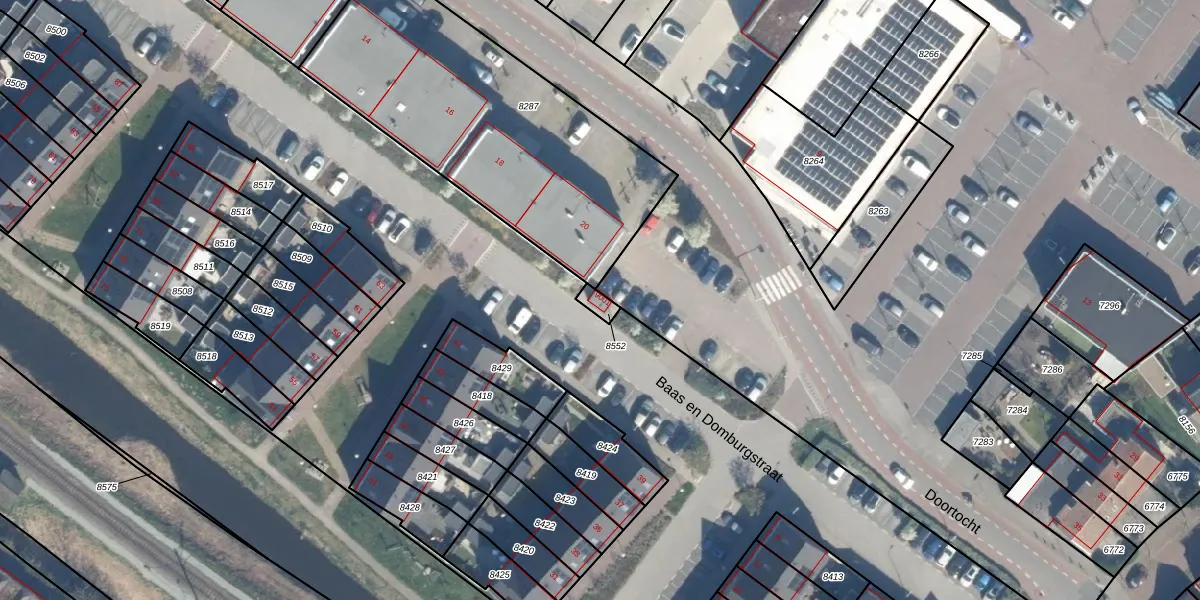 Baas en Domburgstraat 9001 is gelegen op kadastraal perceel BDG00C8552. Deze kadastrale aanduiding is uniek en wordt gebruikt door het Kadaster om eigendomsrechten en andere zakelijke rechten vast te leggen. Het perceel maakt onderdeel uit van de kadastrale gemeente Bodegraven.