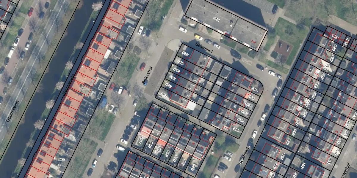 Het perceel waarop Beiershof 45 staat heeft een oppervlakte van 126 m². Dit is een middelgroot perceel. De perceeloppervlakte wordt geregistreerd door het Kadaster. Gedetailleerde informatie over de maten van dit perceel kunt u vinden in het rapport Kadastrale kaart met maatvoering van Beiershof 45.