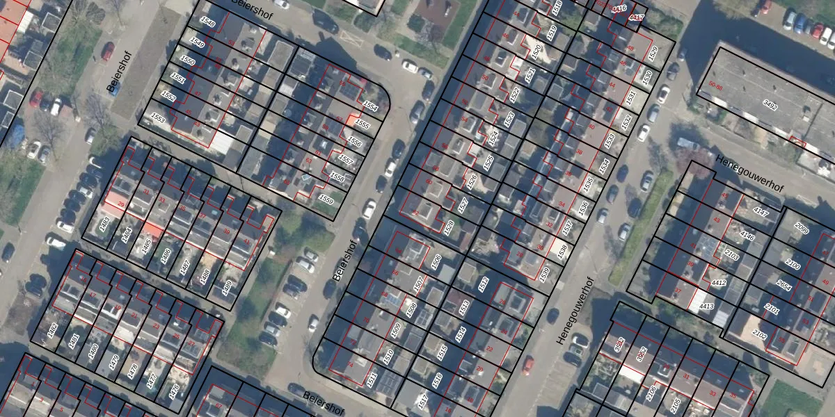Het perceel waarop Beiershof 62 staat heeft een oppervlakte van 176 m². Dit is een middelgroot perceel. De perceeloppervlakte wordt geregistreerd door het Kadaster. Gedetailleerde informatie over de maten van dit perceel kunt u vinden in het rapport Kadastrale kaart met maatvoering van Beiershof 62.