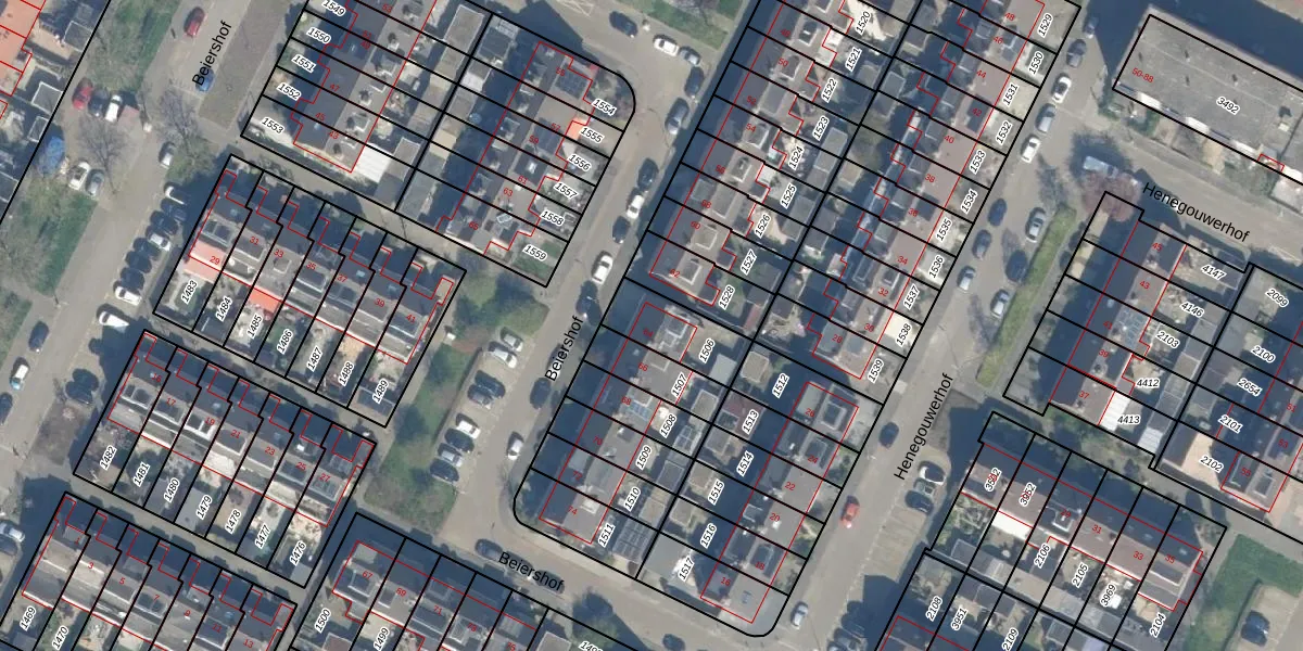 Het perceel waarop Beiershof 64 staat heeft een oppervlakte van 185 m². Dit is een middelgroot perceel. De perceeloppervlakte wordt geregistreerd door het Kadaster. Gedetailleerde informatie over de maten van dit perceel kunt u vinden in het rapport Kadastrale kaart met maatvoering van Beiershof 64.
