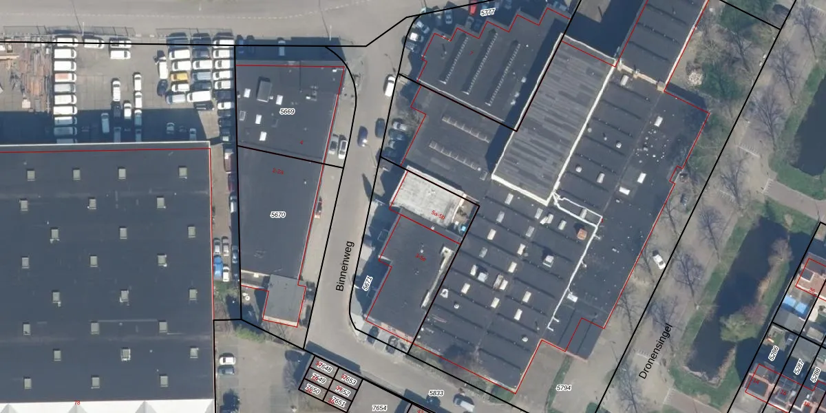 Het perceel waarop Binnenweg 5-b staat heeft een oppervlakte van 870 m². Dit is een groot perceel. De perceeloppervlakte wordt geregistreerd door het Kadaster. Gedetailleerde informatie over de maten van dit perceel kunt u vinden in het rapport Kadastrale kaart met maatvoering van Binnenweg 5-b.