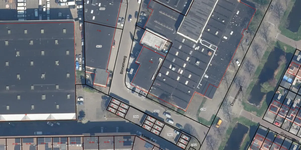 Het perceel waarop Binnenweg 5-d staat heeft een oppervlakte van 870 m². Dit is een groot perceel. De perceeloppervlakte wordt geregistreerd door het Kadaster. Gedetailleerde informatie over de maten van dit perceel kunt u vinden in het rapport Kadastrale kaart met maatvoering van Binnenweg 5-d.