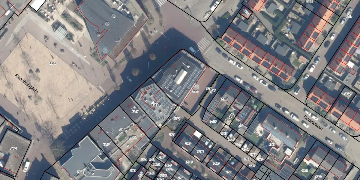 Bodelolaan 1-e is gelegen op kadastraal perceel BDG00B5563. Deze kadastrale aanduiding is uniek en wordt gebruikt door het Kadaster om eigendomsrechten en andere zakelijke rechten vast te leggen. Het perceel maakt onderdeel uit van de kadastrale gemeente Bodegraven.