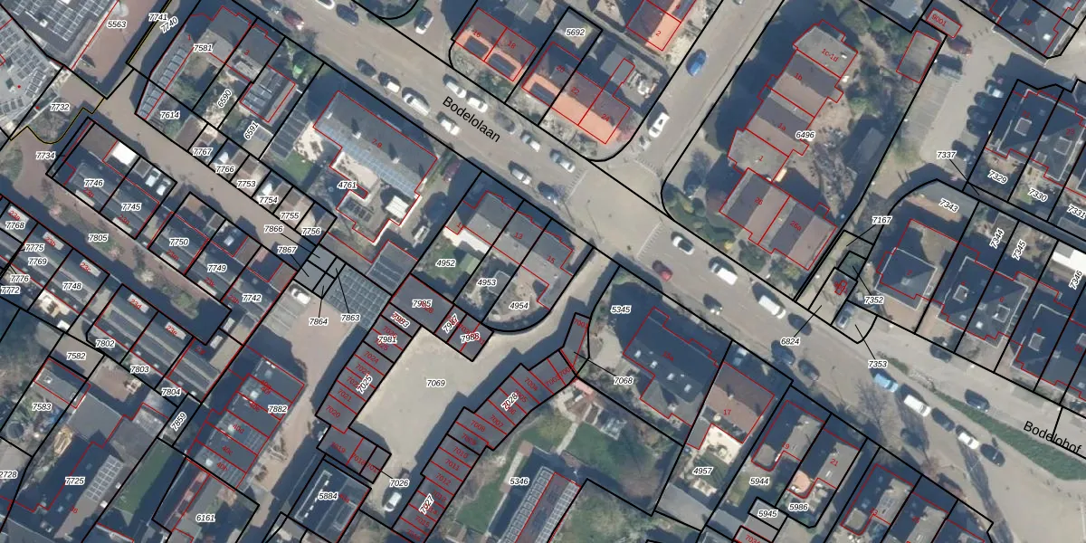 Bodelolaan 15 is gelegen op kadastraal perceel BDG00B4954. Deze kadastrale aanduiding is uniek en wordt gebruikt door het Kadaster om eigendomsrechten en andere zakelijke rechten vast te leggen. Het perceel maakt onderdeel uit van de kadastrale gemeente Bodegraven.