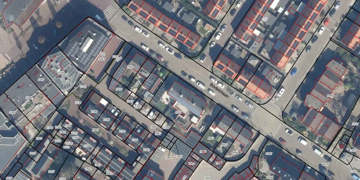 Bodelolaan 5 is gelegen op kadastraal perceel BDG00B4761. Deze kadastrale aanduiding is uniek en wordt gebruikt door het Kadaster om eigendomsrechten en andere zakelijke rechten vast te leggen. Het perceel maakt onderdeel uit van de kadastrale gemeente Bodegraven.
