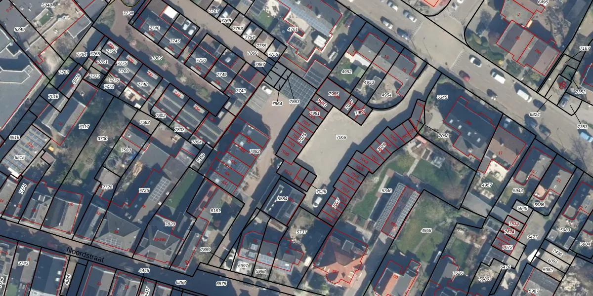 Het adres is gelegen op perceel 7025 in de sectie B en de kadastrale gemeente Bodegraven. De kadastrale aanduiding is aldus BDG00-B-7025. De gemiddelde perceelgrootte in Bodegraven is 3215,6 m². Dit perceel is kleiner: de perceeloppervlakte bedraagt 165 m². Het grootste perceel in de kadastrale gemeente is 36,3 ha. Het kleinste perceel heeft een oppervlakte van 0 m². Er zijn 7 adressen aanwezig op het perceel. De huidige grenzen van het perceel zijn digitaal in de Basisregistratie Kadaster (BRK) geregistreerd op 31-12-2002.