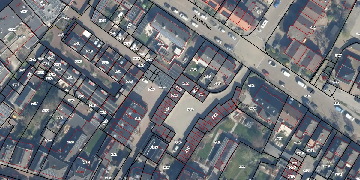 Bodelolaan 7027 is gelegen op kadastraal perceel BDG00B7983. Deze kadastrale aanduiding is uniek en wordt gebruikt door het Kadaster om eigendomsrechten en andere zakelijke rechten vast te leggen. Het perceel maakt onderdeel uit van de kadastrale gemeente Bodegraven.