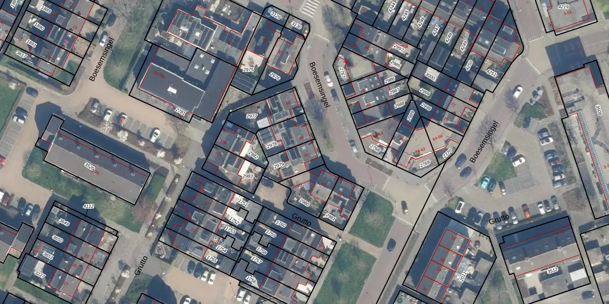 Het perceel waarop Boesemsingel 91 staat heeft een oppervlakte van 165 m². Dit is een middelgroot perceel. De perceeloppervlakte wordt geregistreerd door het Kadaster. Gedetailleerde informatie over de maten van dit perceel kunt u vinden in het rapport Kadastrale kaart met maatvoering van Boesemsingel 91.