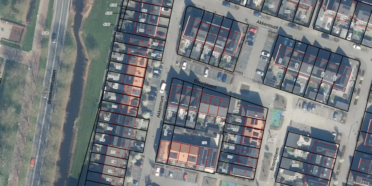 Gebruik de zoekbalk of klik op een perceel voor informatie over de adressen binnen dit perceel.