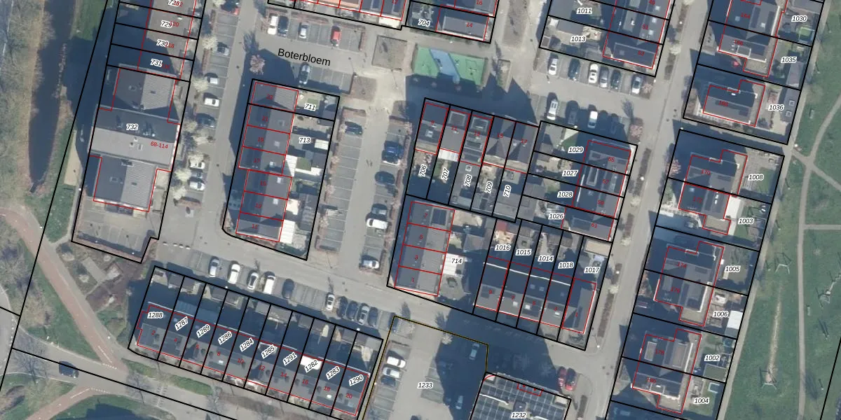 Het perceel waarop Boterbloem 7 staat heeft een oppervlakte van 505 m². Dit is een groot perceel. De perceeloppervlakte wordt geregistreerd door het Kadaster. Gedetailleerde informatie over de maten van dit perceel kunt u vinden in het rapport Kadastrale kaart met maatvoering van Boterbloem 7.