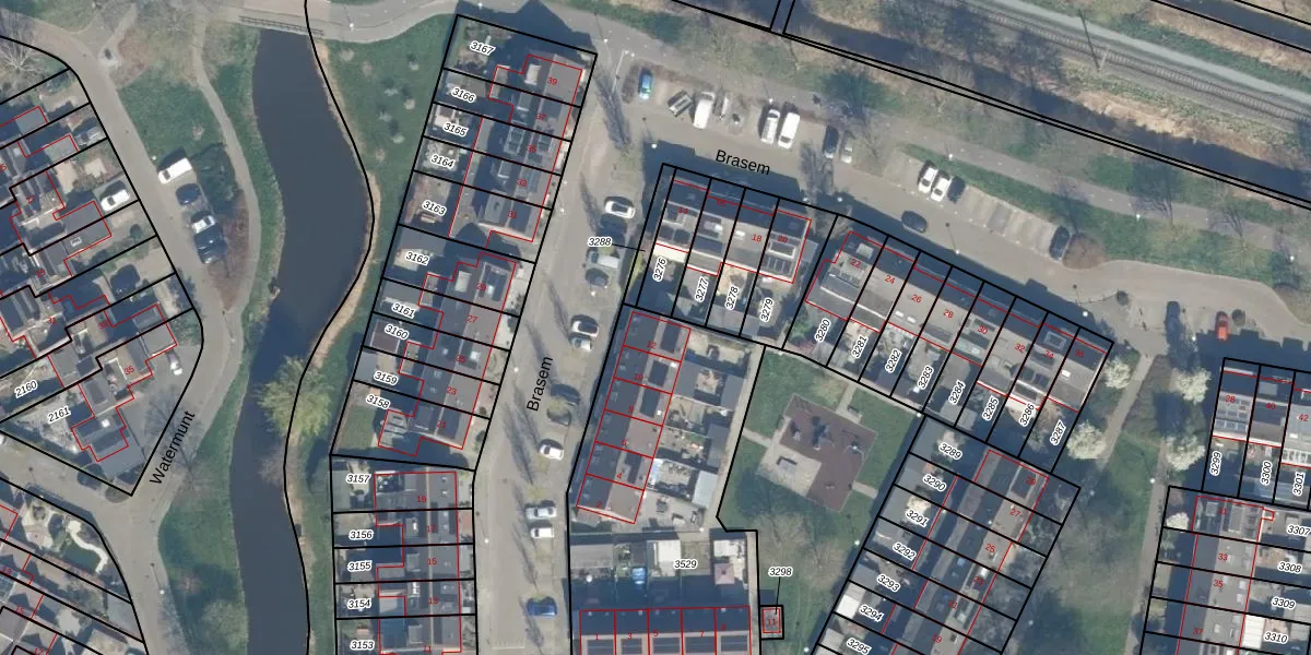 Het perceel waarop Brasem 12 staat heeft een oppervlakte van 1457 m². Dit is een zeer groot perceel. De perceeloppervlakte wordt geregistreerd door het Kadaster. Gedetailleerde informatie over de maten van dit perceel kunt u vinden in het rapport Kadastrale kaart met maatvoering van Brasem 12.