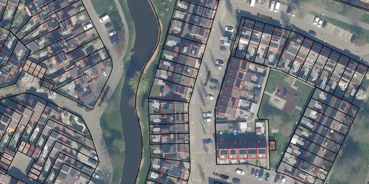 Gebruik de zoekbalk of klik op een perceel voor informatie over de adressen binnen dit perceel.