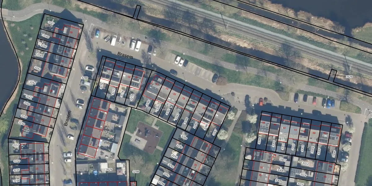 Gebruik de zoekbalk of klik op een perceel voor informatie over de adressen binnen dit perceel.