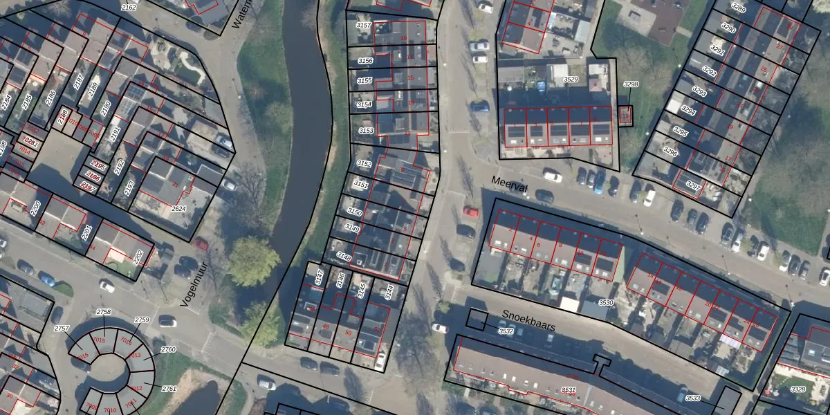 Gebruik de zoekbalk of klik op een perceel voor informatie over de adressen binnen dit perceel.