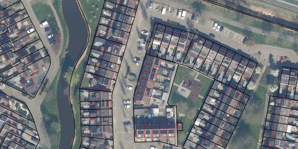 Het perceel waarop Brasem 8 staat heeft een oppervlakte van 1457 m². Dit is een zeer groot perceel. De perceeloppervlakte wordt geregistreerd door het Kadaster. Gedetailleerde informatie over de maten van dit perceel kunt u vinden in het rapport Kadastrale kaart met maatvoering van Brasem 8.