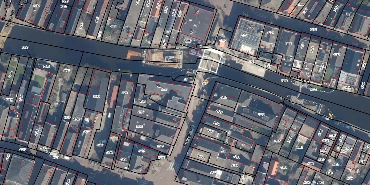 Het perceel waarop Brugstraat 12 staat heeft een oppervlakte van 355 m². Dit is een groot perceel. De perceeloppervlakte wordt geregistreerd door het Kadaster. Gedetailleerde informatie over de maten van dit perceel kunt u vinden in het rapport Kadastrale kaart met maatvoering van Brugstraat 12.