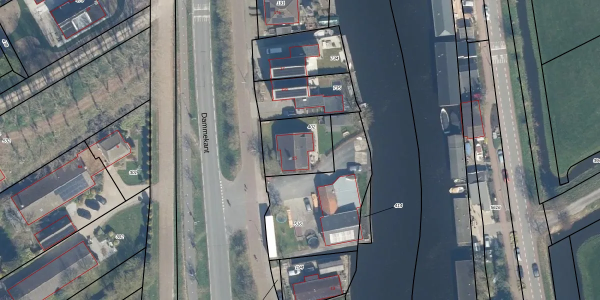 Het perceel waarop Dammekant 15 staat heeft een oppervlakte van 430 m². Dit is een groot perceel. De perceeloppervlakte wordt geregistreerd door het Kadaster. Gedetailleerde informatie over de maten van dit perceel kunt u vinden in het rapport Kadastrale kaart met maatvoering van Dammekant 15.