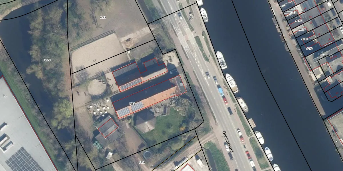 Het perceel waarop Dammekant 2 staat heeft een oppervlakte van 3855 m². Dit is een zeer groot perceel. De perceeloppervlakte wordt geregistreerd door het Kadaster. Gedetailleerde informatie over de maten van dit perceel kunt u vinden in het rapport Kadastrale kaart met maatvoering van Dammekant 2.