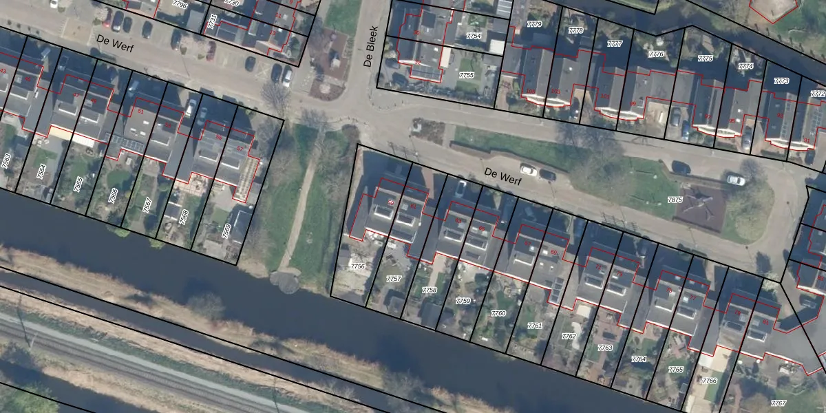 Het perceel waarop De Werf 61 staat heeft een oppervlakte van 331 m². Dit is een groot perceel. De perceeloppervlakte wordt geregistreerd door het Kadaster. Gedetailleerde informatie over de maten van dit perceel kunt u vinden in het rapport Kadastrale kaart met maatvoering van De Werf 61.