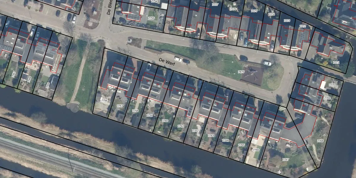 Het perceel waarop De Werf 67 staat heeft een oppervlakte van 331 m². Dit is een groot perceel. De perceeloppervlakte wordt geregistreerd door het Kadaster. Gedetailleerde informatie over de maten van dit perceel kunt u vinden in het rapport Kadastrale kaart met maatvoering van De Werf 67.