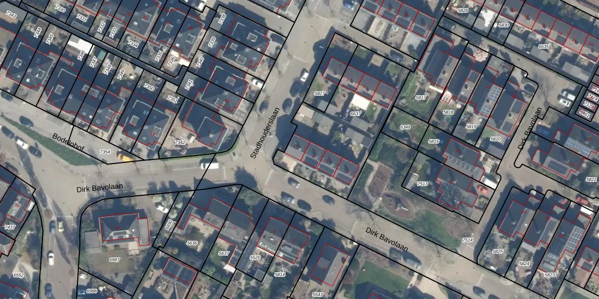 Dirk Bavolaan 2 is gelegen op kadastraal perceel BDG00B6637. Deze kadastrale aanduiding is uniek en wordt gebruikt door het Kadaster om eigendomsrechten en andere zakelijke rechten vast te leggen. Het perceel maakt onderdeel uit van de kadastrale gemeente Bodegraven.