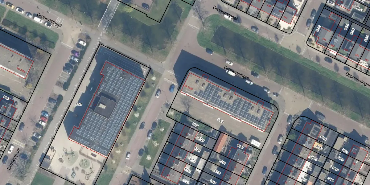 Het perceel waarop Dronensingel 133 staat heeft een oppervlakte van 1371 m². Dit is een zeer groot perceel. De perceeloppervlakte wordt geregistreerd door het Kadaster. Gedetailleerde informatie over de maten van dit perceel kunt u vinden in het rapport Kadastrale kaart met maatvoering van Dronensingel 133.