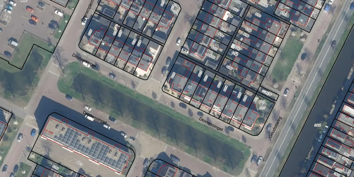 Dronensingel 144 is gelegen op kadastraal perceel BDG00C6370. Deze kadastrale aanduiding is uniek en wordt gebruikt door het Kadaster om eigendomsrechten en andere zakelijke rechten vast te leggen. Het perceel maakt onderdeel uit van de kadastrale gemeente Bodegraven.