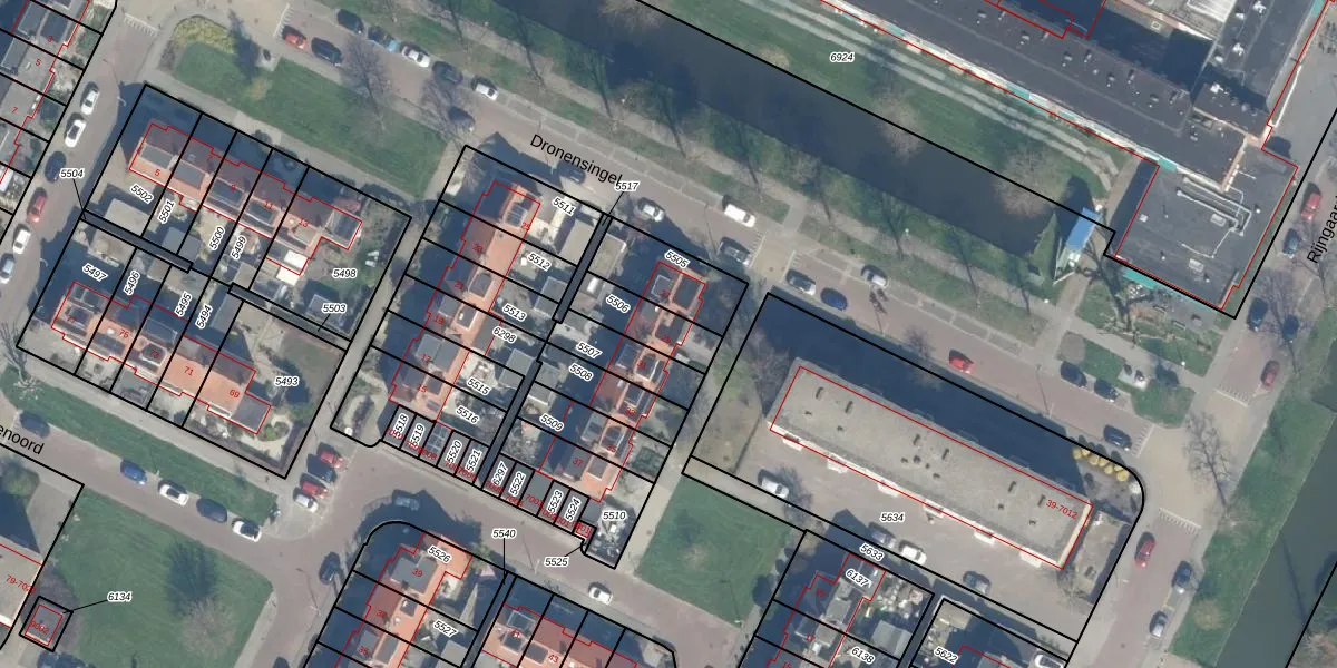 Het perceel waarop Dronensingel 29 staat heeft een oppervlakte van 137 m². Dit is een middelgroot perceel. De perceeloppervlakte wordt geregistreerd door het Kadaster. Gedetailleerde informatie over de maten van dit perceel kunt u vinden in het rapport Kadastrale kaart met maatvoering van Dronensingel 29.