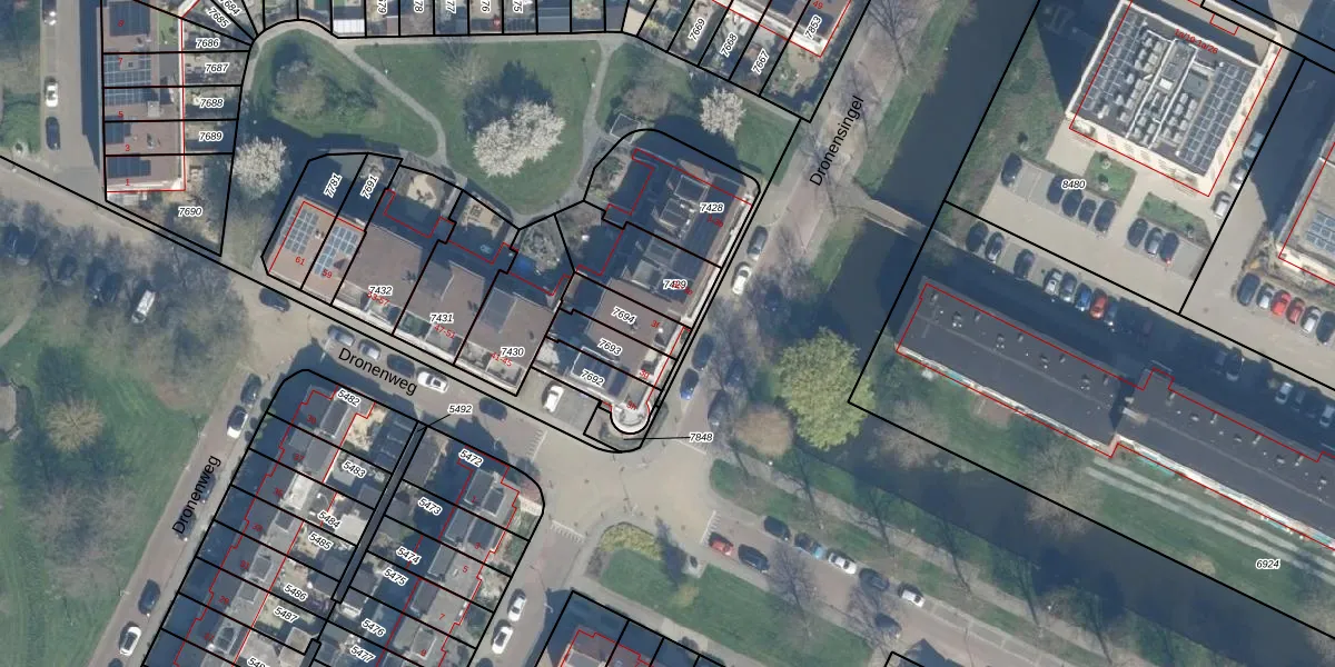 Gebruik de zoekbalk of klik op een perceel voor informatie over de adressen binnen dit perceel.