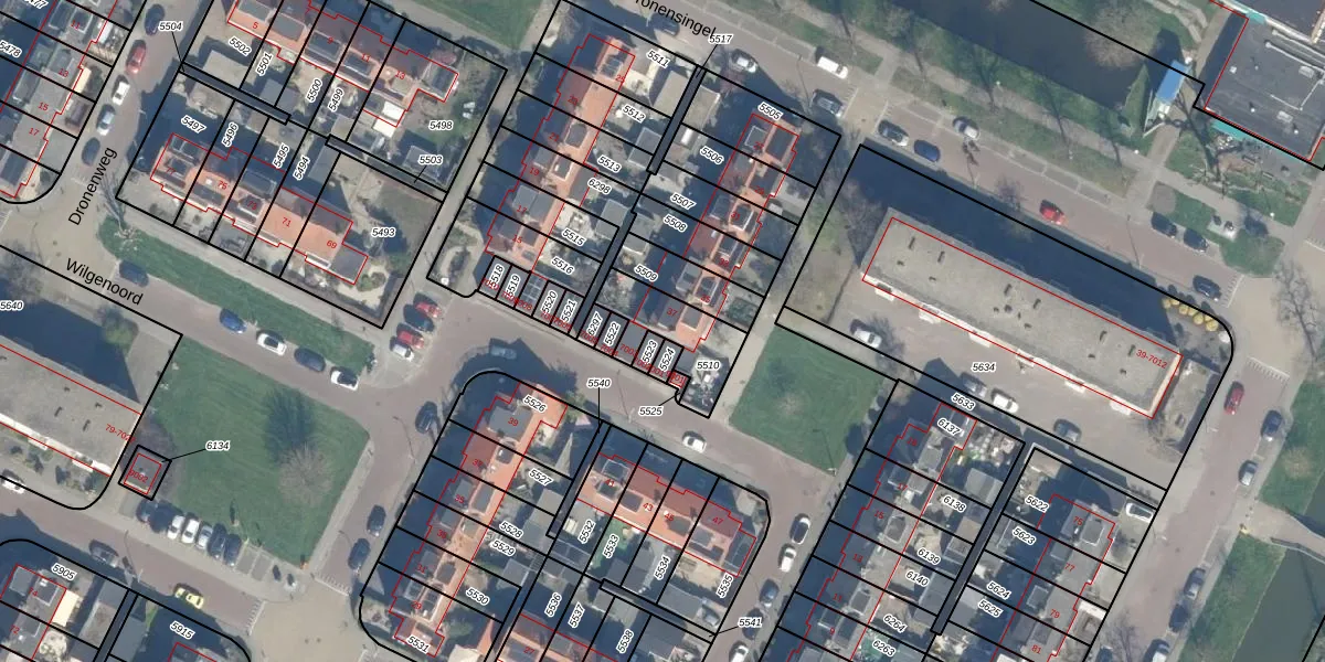 Dronensingel 37 is gelegen op kadastraal perceel BDG00C5510. Deze kadastrale aanduiding is uniek en wordt gebruikt door het Kadaster om eigendomsrechten en andere zakelijke rechten vast te leggen. Het perceel maakt onderdeel uit van de kadastrale gemeente Bodegraven.