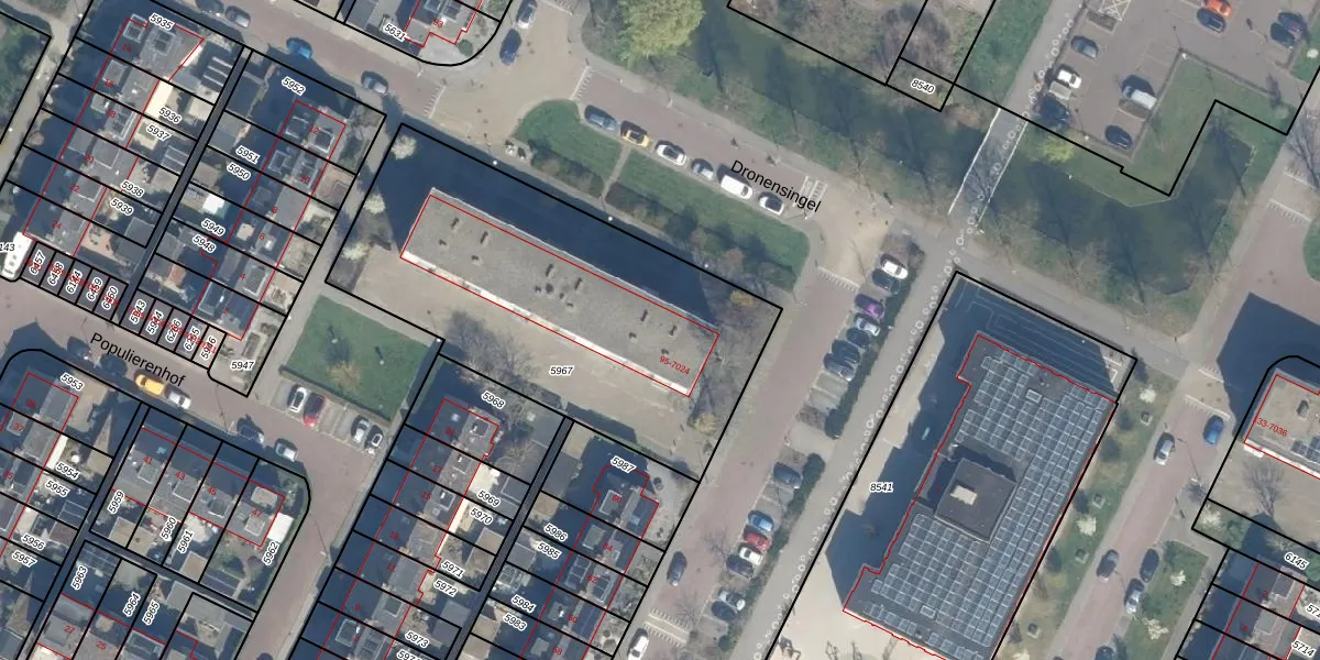 Dronensingel 7021 is gelegen op kadastraal perceel BDG00C5967. Deze kadastrale aanduiding is uniek en wordt gebruikt door het Kadaster om eigendomsrechten en andere zakelijke rechten vast te leggen. Het perceel maakt onderdeel uit van de kadastrale gemeente Bodegraven.